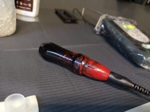 Är ett låneord från engelskan för att benämna en tatueringsmaskin vars elektriska motor driver en roterande axel, vilken i sin tur för nålen fram och tillbaka, likt en pistong på ett svänghjul.